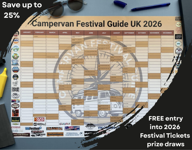 Welcome to the Campervan Festival Guide, the home to the largest list of Campervan Shows & festivals in the UK. Plus our fabulous Annual wall planners, Discounts from your favourite campervan companies, discount campervan insurance, Discounts on Breakdown cover and much much more. Our full list of all the upcoming UK Campervan shows has something for everyone and every van. It shows you where they all are, if they are family friendly, pet friendly and also whether the festivals are more music than vans, or more VW than Vanlife.