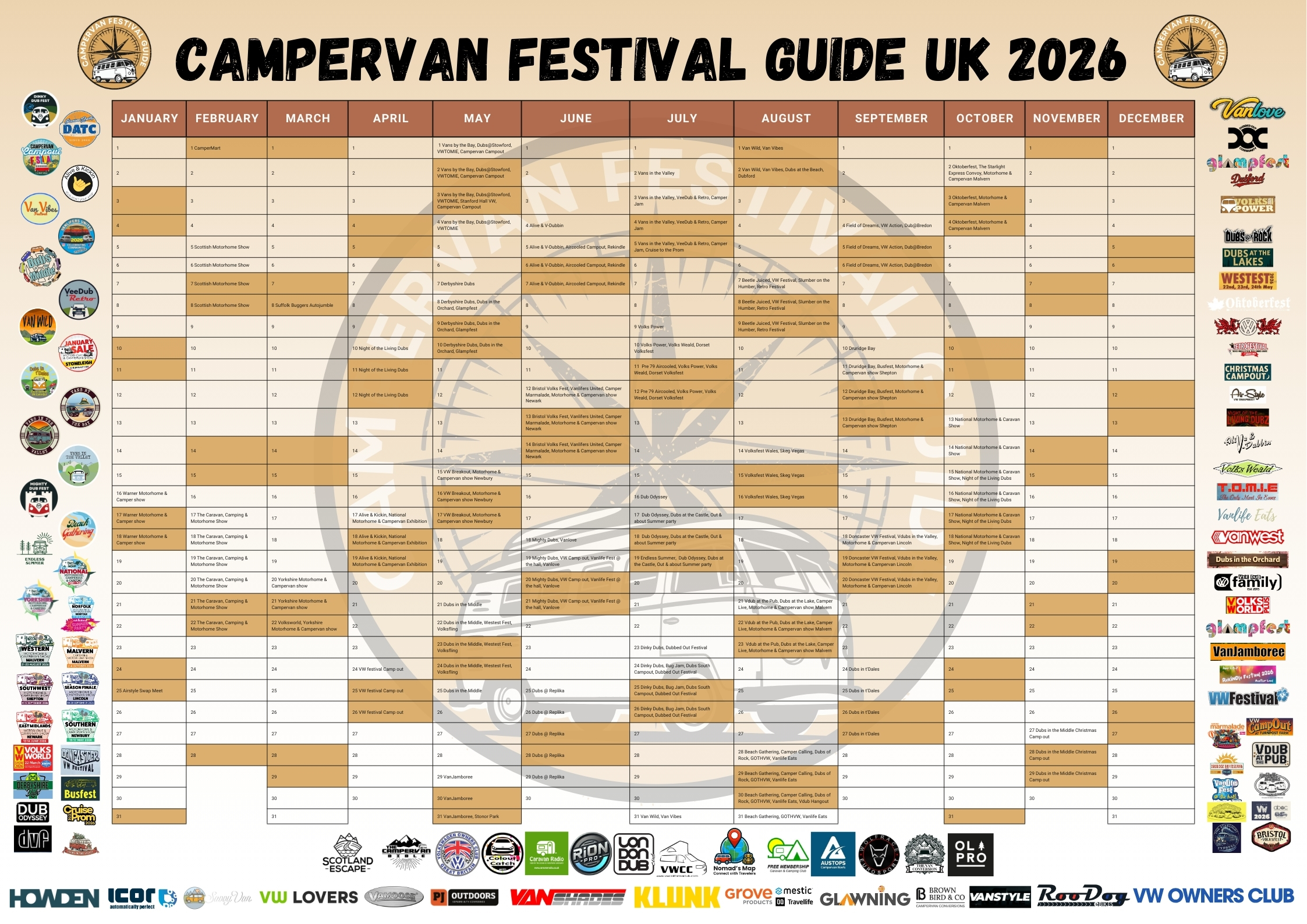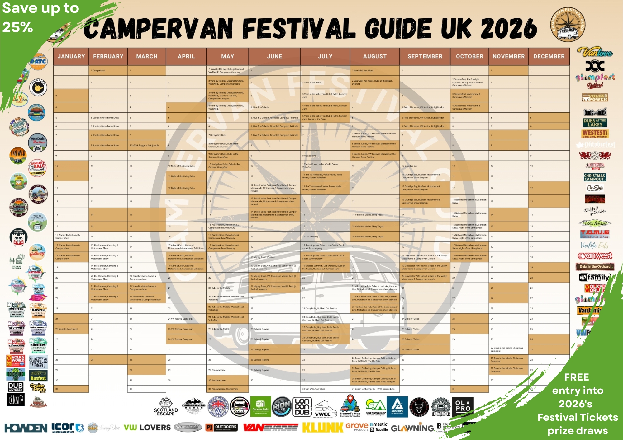 Don't forget to order your 2026 Campervan Festival Wall Planner & get FREE entry into our 2026 Ticket giveawaysÂ