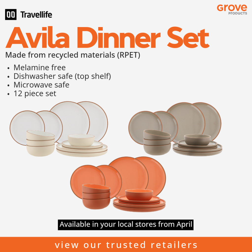Upgrade your campervan dining experience with the Avila 12-piece dinner set. Made from recycled RPET materials, this stylish and durable set is designed for life on the road, whether you’re enjoying breakfast at a campsite or dinner under the stars.