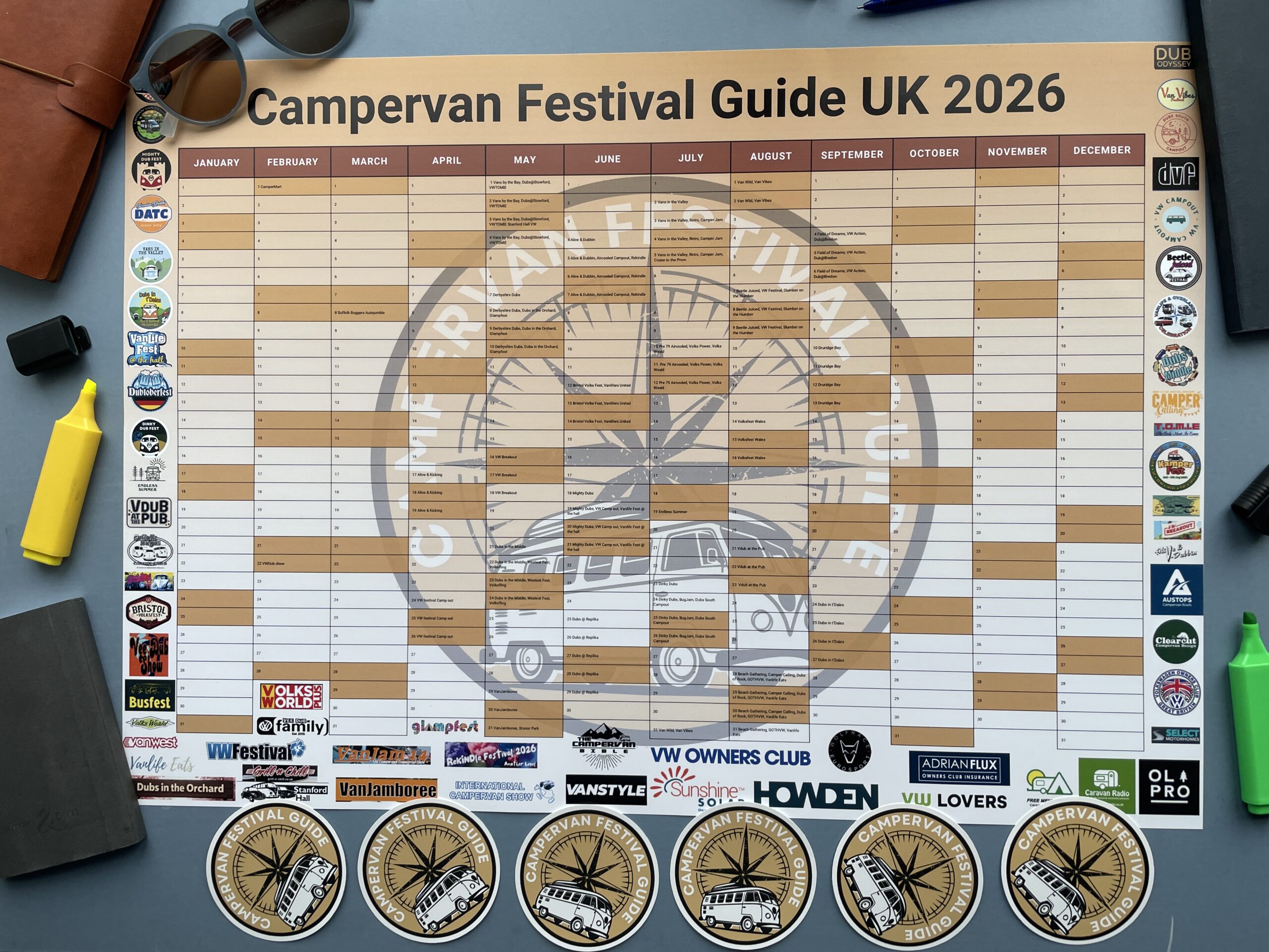 - The UK’s Biggest Collection of Campervan Festivals – all in one easy-to-see A2 wall planner.